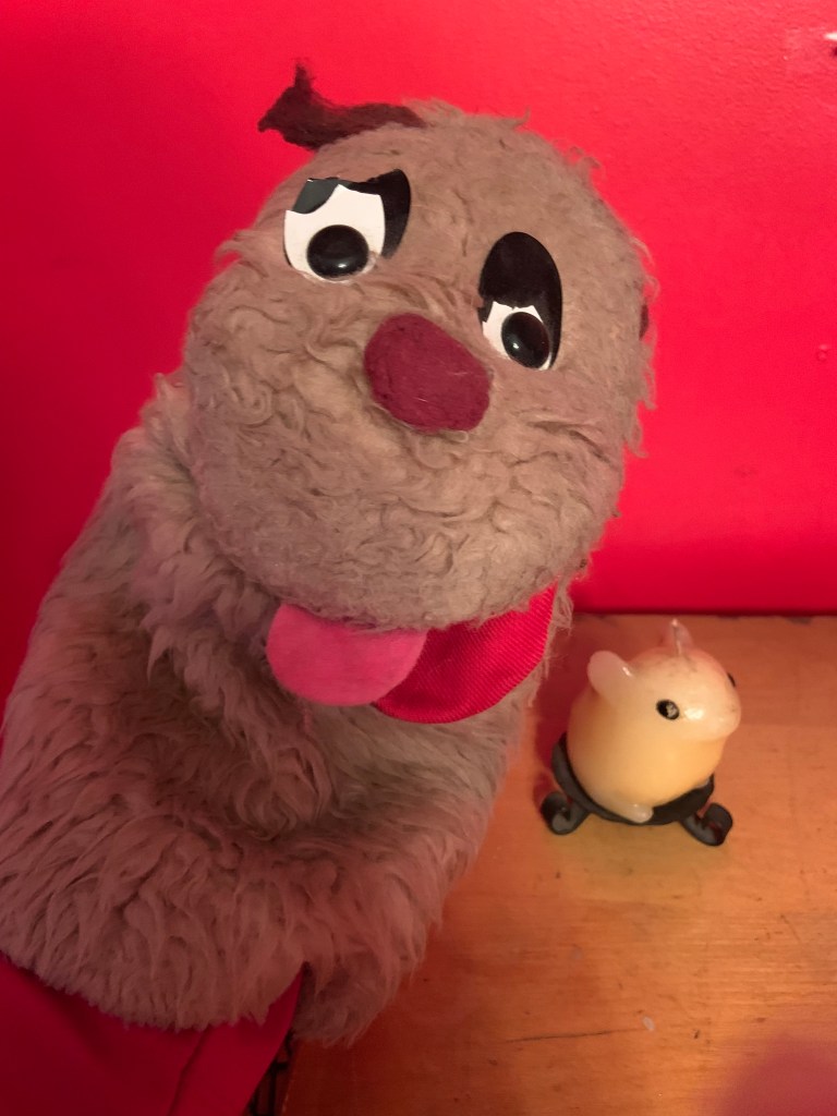 Among her most precious gifts to me – a watch, a candle of a yellow mouse, its tail curled up around its back, and a hand puppet of a dog I named Harry. I like to think that even though she wasn’t able to see me open these treasures that Christmas so long ago, that she still saw. The candle sits, not yet burned, in a place of honour on my desk. The watch died years ago but I haven’t been able to part with it. Harry is a little tattered and torn but he too lives on.